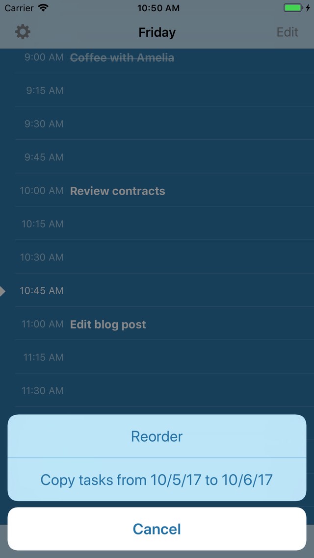 - Quickly copy incomplete tasks from the previous day to your currently selected day.